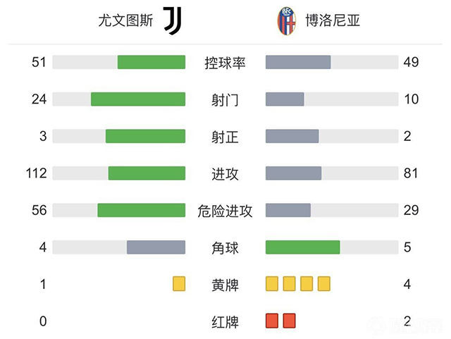 全场比赛结束,尤文图斯主场1-1战平博洛尼亚。