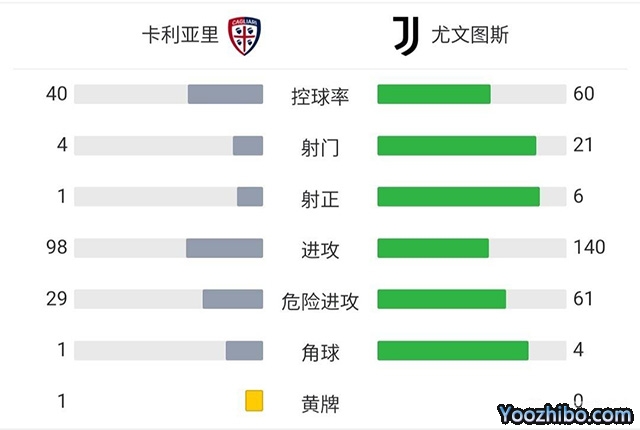 全场比赛结束,尤文客场2-1卡利亚里。