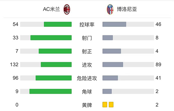全场比赛结束,AC米兰主场0-0战平博洛尼亚。
