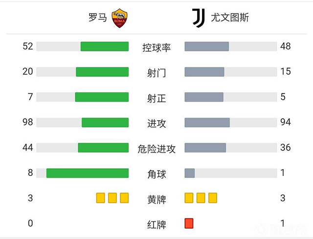 第17分钟,基耶萨内切后横敲,迪巴拉禁区弧顶起脚搓射,皮球直挂网窝死角,罗马1-1尤文图斯!