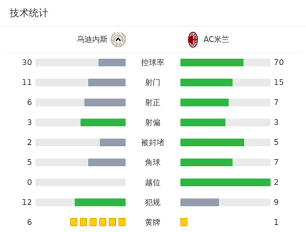 米兰3-2乌迪内斯 米兰联赛4连胜&先赛距榜首6分