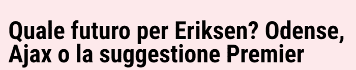 《米体》表示,这是因为埃里克森仍然想在高水平联赛中踢球,荷甲和英超都有球队对他感兴趣。