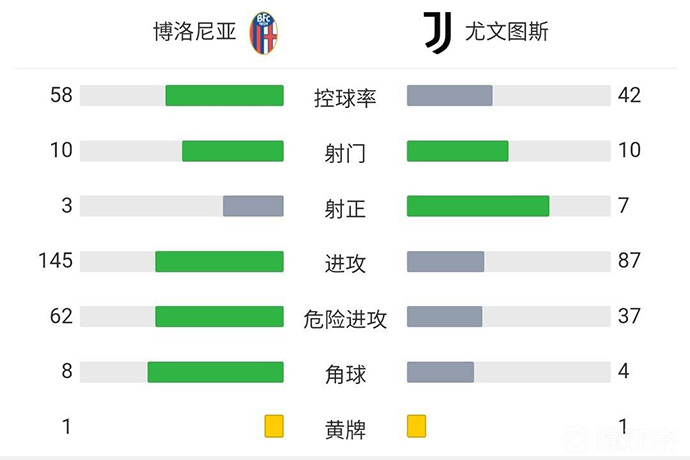 全场比赛结束,尤文图斯客场2-0战胜博洛尼亚。
