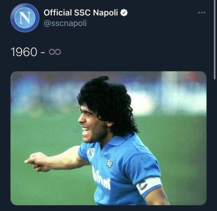 那不勒斯官方晒出了马拉多纳在球队效力时的照片,并配文:1960-∞。