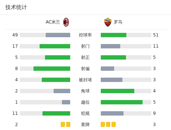 第11分钟,赖因德斯横传,弧顶处阿德利得球扣过克里斯滕森,随即一脚低射攻破斯维拉尔十指关,AC米兰1-0罗马。