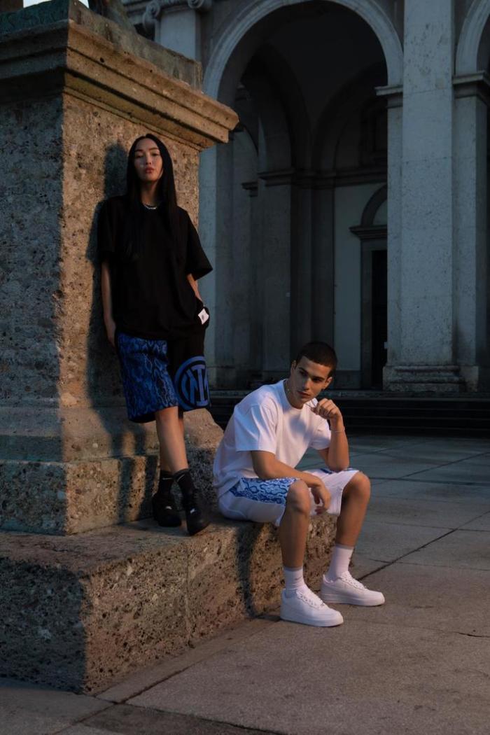 该系列服装的独特之处正是其‘MadeinMilano’的标签,它将同时出现在衣服的内侧及正面。第一款系列套装已于今天发布,包含连帽衫、T恤以及短裤,特殊的蛇纹印花也与俱乐部本赛季的球衣纹理的设计一致。