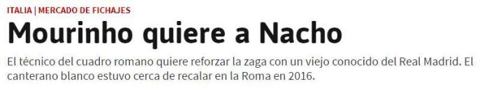 纳乔是穆里尼奥在防线上的首选,这名效力皇马多年的西班牙球员可以胜任边后卫和中后卫,对于罗马来说是很好的补充。