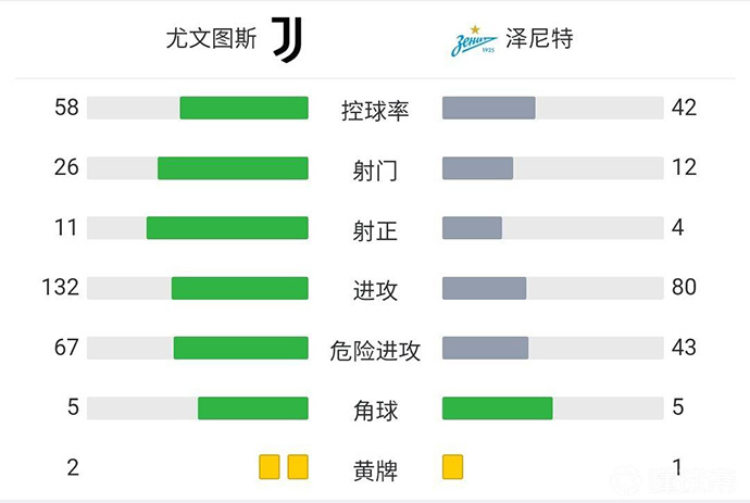第26分钟,泽尼特扳平了比分!泽尼特左路的传中,博努奇没有压力的情况下头球一顶,竟然直接顶进了自家球门的死角!尤文送出乌龙球,尤文1-1泽尼特!