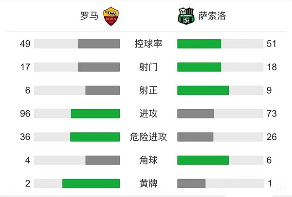 全场比赛结束,罗马2-1绝杀萨索洛。