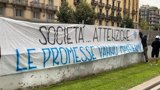 这让国米球迷感到不满,一些极端球迷今日到俱乐部总部外拉起了横幅,横幅上写着:“董事会的人,注意了,要遵守你们的承诺。”