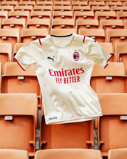 2021/22赛季AC米兰足球俱乐部男足、女足和青年队全新客场球衣。这款特别的全新金色球衣旨在为AC米兰慈善机构“米兰基金会(Fondazione Milan)”的工作致贺,球衣背面领口下特别印有 "Fondazione Milan "字样。全新的客场球衣以遍布的醒目纹路图案为主题,灵感源自参与一项慈善计划的全球六座城市,该计划将于9月正式启动。