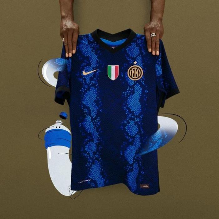 国米新赛季的球衣设计别出心裁,如同蓝色蟒蛇的皮肤一般,并带有俱乐部全新的视觉标识。