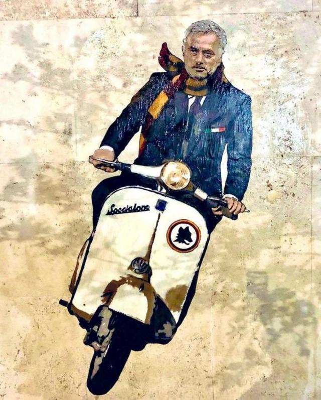 在罗马官宣穆里尼奥上任后,罗马城街头就出现了以影坛名作《罗马假日》为蓝本的穆帅壁画,而今天穆帅晒出了自己在罗马训练基地兜风的照片,完美复刻了这一画面。