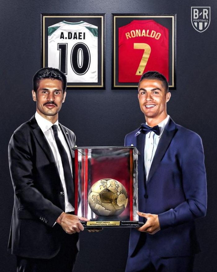 据统计,C罗用了178场比赛打进了109球,而伊朗传奇球星阿里-代伊则用145场比赛打进了109球,效率上比C罗更高。