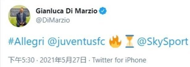 罗马诺报道称,阿莱格里决定接手尤文而非