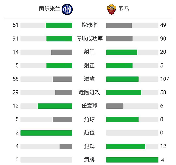 罗马首发:87-弗扎托、2-卡尔斯多普(87'33-布鲁诺-佩雷斯)、23-詹卢卡-曼奇尼、24-库穆布拉、18-桑顿、55-达尔伯(87'31-卡莱斯-佩雷斯)、4-克里斯坦特(76'14-比利亚尔)、11-佩德罗(46'92-沙拉维)、77-姆希塔良、7-洛伦佐-佩莱格里尼、9-哲科