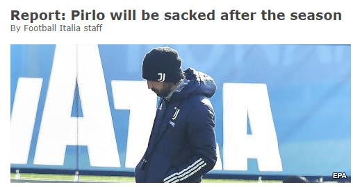 即使拿到欧冠资格和意大利杯冠军, 皮尔洛也会下课