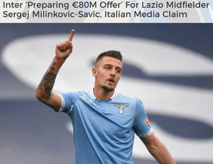 消息称,拉齐奥主席洛蒂托迫切想要留住米林科维奇,而国米将会是他们最大的威胁。据悉,孔蒂非常欣赏米林科维奇,而国米决定满足这位冠军教头的引援需要,CEO马洛塔已经准备好一份价值8000万欧元的报价,并且与球员的经纪人凯日曼展开了初步接触。