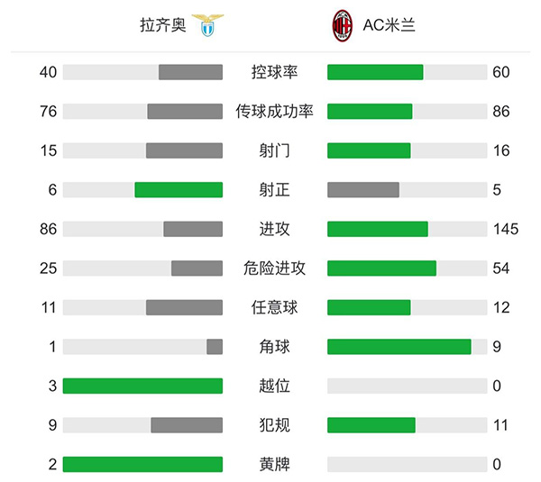 AC米兰0-3拉齐奥 华金-科雷亚梅开二度