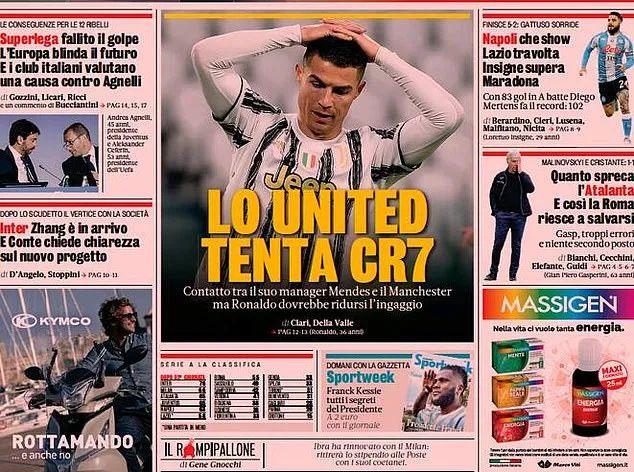 2018年,尤文以8800万镑高价从皇马签下C罗,但未能实现夺取欧冠的宏大目标。如今,因欧洲超级联赛而备受压力的尤文巨头安德烈·阿涅利,看好德里赫特、小基耶萨等人成为未来俱乐部的支柱,如果C罗走人,他也会续约迪巴拉到2026年。该报称,曼联上周已经接洽门德斯,但C罗重返老特拉福德也还存在钱的问题。他的转会费不是障碍,但其高薪则是拦路虎。按照目前的收入数据,C罗的年薪将超越尤文给他的转会费定价,他的年薪高达2700万镑(3100万欧元)。而且,自视极高的C罗,并不打算降低收入。而曼联向C罗的经纪人门德斯提出,要回归就必须降薪一半,也就是只有1350万镑年薪,相当于大约26万周薪,只比红魔目前的中锋马夏尔略高。在曼联,德赫亚享受37.5万镑周薪排名第一,博格巴29万位居第二。
