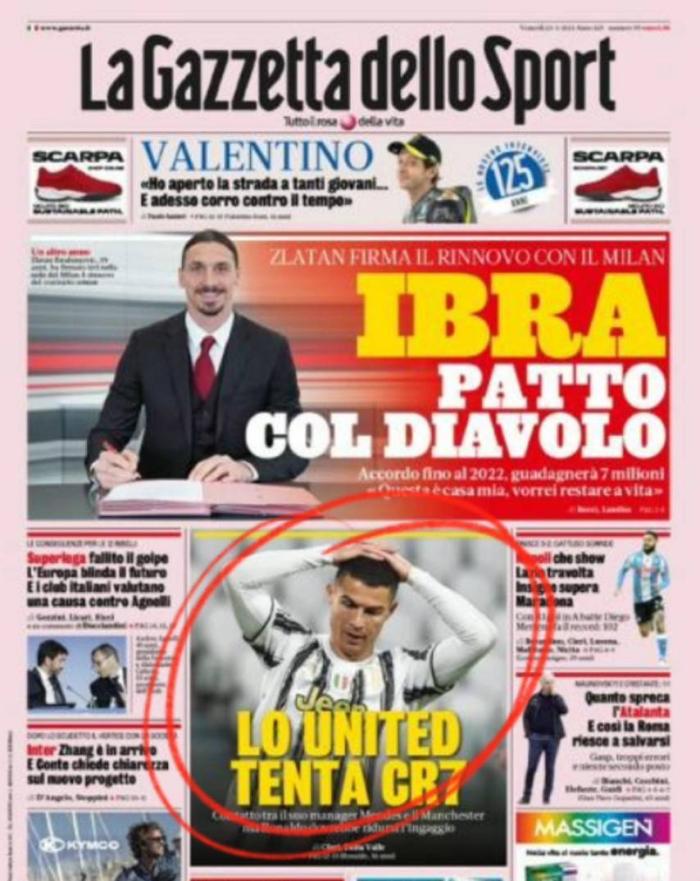 前段时间C罗曾主动示好尤文高层,希望能够在原有合同基础上续约一年。但是并没有得到高层的回应,在这个阶段曼联如果出手的话,C罗回归的概率是很大的。 米兰体育报报道C罗回归曼联的消息一共用了两个版面,他们表示C罗的经纪人门德斯也出面开始运作。如果是这样的话,那么C罗在这个夏天是有望回归英超的。既然在尤文图斯承受了太多的压力,那么不妨换一个环境,或许C罗能够开心一些。C罗的球迷们,相信也可以理解。