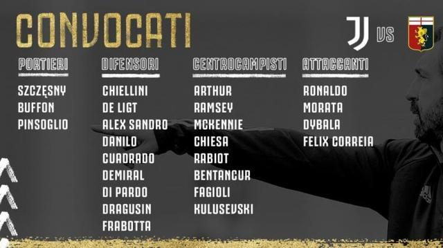 前锋:C罗、莫拉塔、迪巴拉、菲利克斯-科雷亚