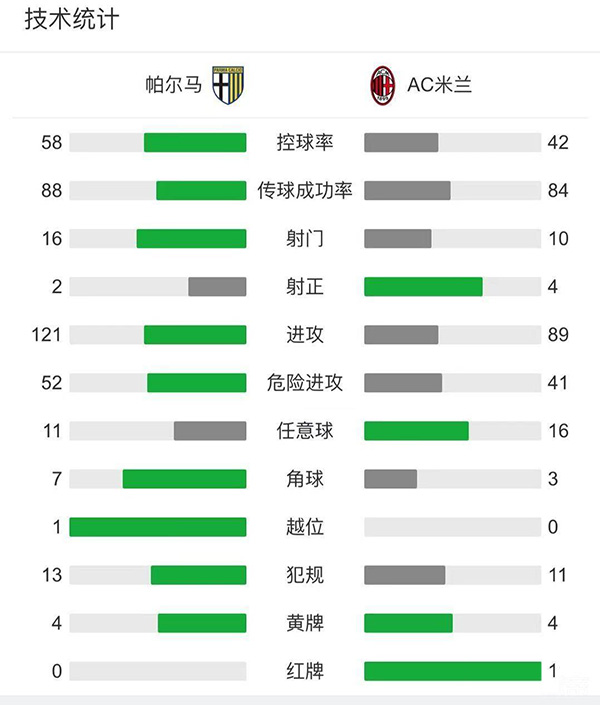 全场比赛结束,十人米兰3-1力克帕尔马。