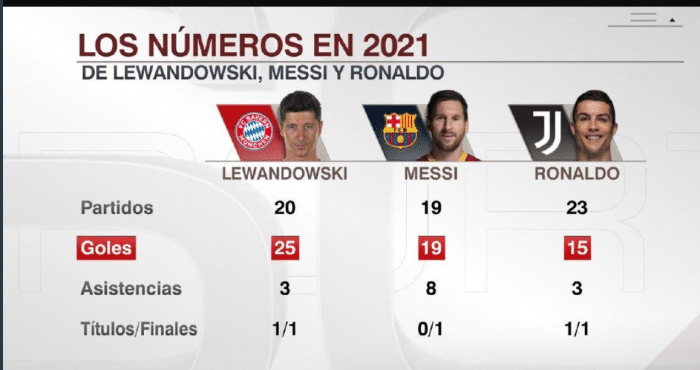2021年梅西、C罗和莱万数据对比!梅西或许才是表现最好的那个!