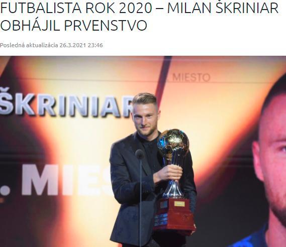 24直播网讯北京时间3月27日,斯洛伐克足协官方宣布,国米球员什克里尼亚尔当选斯洛伐克2020年度最佳球员。