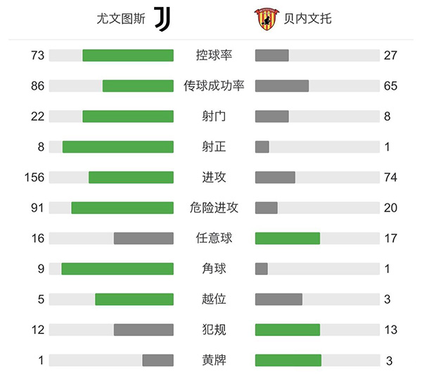 全场比赛结束,尤文图斯0比1不敌贝内文托,落后榜首10分暂居联赛第三。