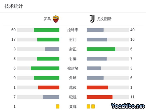 全场比赛结束,罗马1-1战平尤文图斯。