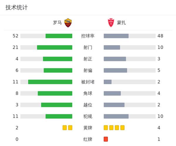 罗马1-0蒙扎 沙拉维制胜穆帅染红