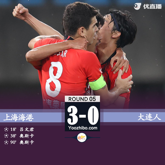 24直播网5月16日讯 北京时间5月16日18:00,中超联赛第5轮,上海海港对阵大连人。上半场比赛,李申圆边路传中助攻吕文君破门,奥斯卡中超百场里程碑兜射死角扩大比分。下半场比赛,奥斯卡点球破门完成梅开二度。全场比赛结束,海港3-0战胜大连人。