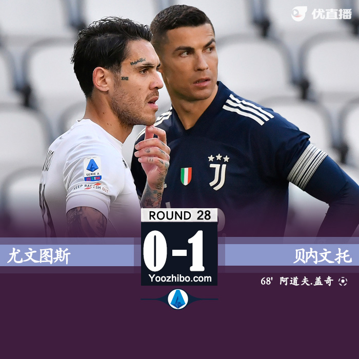 24直播网3月21日讯 北京时间3月21日晚上22:00,2020-21赛季意甲第28轮,尤文图斯坐镇主场迎战贝内文托。上半场达尼洛和莫拉塔门前失良机,C罗越位位置进球。下半场阿图尔送礼贾奇破门,尤文狂攻无果。全场比赛结束,尤文图斯0-1爆冷不敌贝内文托,距离榜首国际米兰10分。