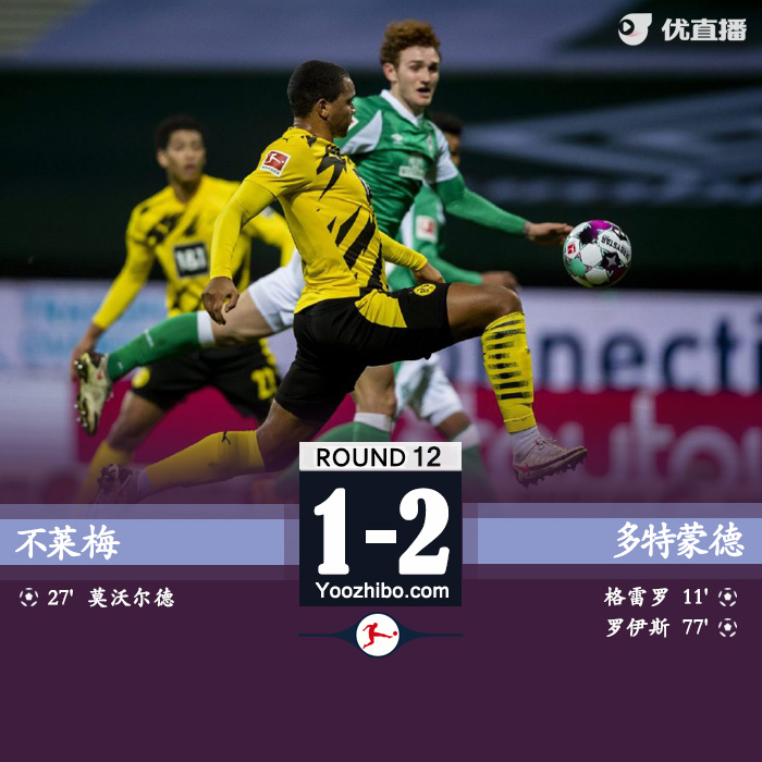 24直播网讯:北京时间12月16日03:30,德甲第12轮不莱梅对阵多特蒙德。上半场比赛,穆科科首次先发,格雷罗补射首开纪录,莫瓦尔德远射扳平,不莱梅半场1-1多特。下半场比赛,阿坎吉造点,罗伊斯点射被扑补射建功。最终,多特客场2-1战胜不莱梅,终结近三轮不胜。