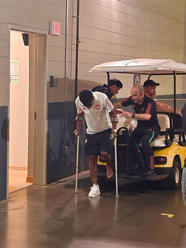 迪亚洛倒地时周围并没有阿森纳对手,他随后一瘸一拐离开,这种无对抗的伤势通常更为严重。在更衣室接受治疗之后,出来时曼联边锋拄着拐杖,脚踝上缠着绷带,坐上一辆电瓶车离开纽约大都会球场。迪亚洛赛后表示:「我也曾担心会有最糟糕的结果,幸运的是,并不严重,我很快就会回来。」