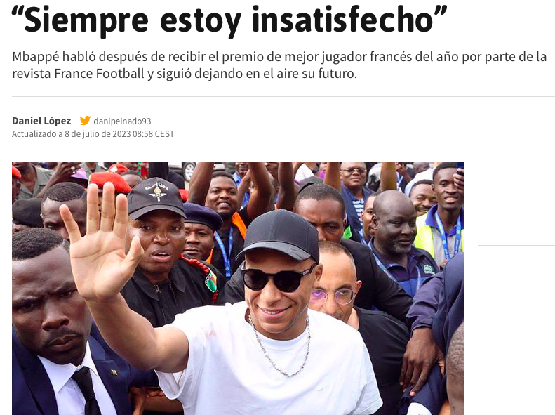 来源:24直播网07-08 17:5024直播网讯07月08日,法国天才姆巴佩接受了法国知名媒体《队报》的采访。在采访中姆巴佩语出惊人表示大巴黎是一支“分裂的球队”,留在这踢球对他没有太多益处。