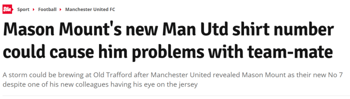 24岁的芒特穿上俱乐部标志性的7号球衣后,首先就要面对2009年C罗转会皇马后,老特拉福德无人能破的「7号魔咒」。在那之后曼联的每一名7号球员,无论迈克尔·欧文、安东尼奥·瓦伦西亚、迪马利亚、桑切斯、卡瓦尼和回归的C罗本人,都没有好结果。