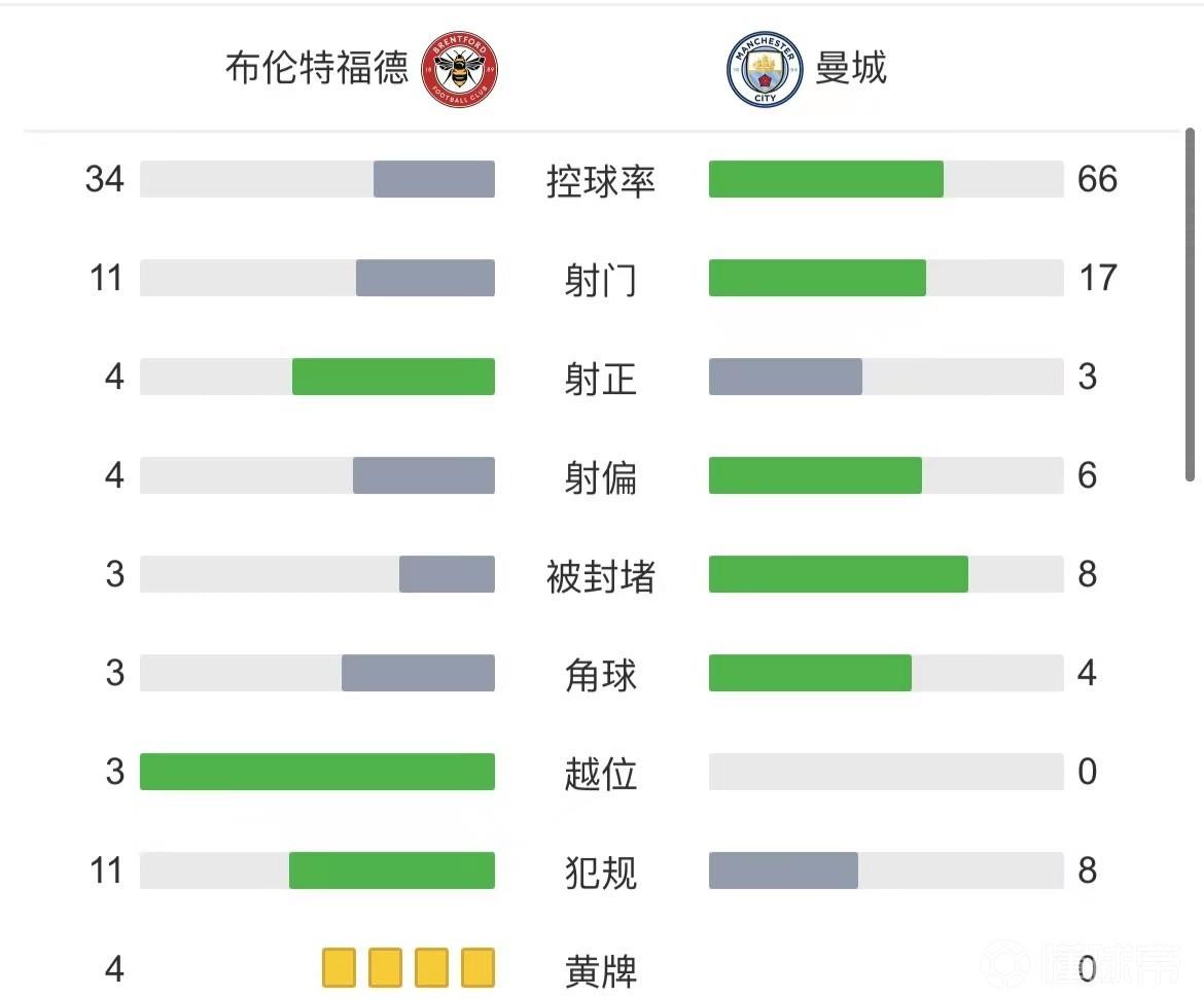 曼城0-1布伦特福德 小蜜蜂无欧战&双杀蓝月
