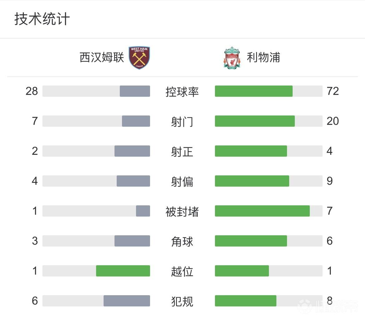 最终利物浦客场2-1击败西汉姆,取得联赛三连胜,暂升至积分榜第六位。