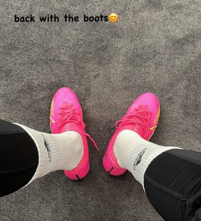 不过,本周18岁的加纳乔在社交网站分享了自己穿上粉红色球鞋的照片,并且宣布自己「回来」(back with the boots)。在曼联0-0战平南安普顿之战,加纳乔73分钟才替补出场,但不到10分钟后,在禁区内遭到沃克彼得斯的铲球,随后一瘸一拐离场,并且拄起双拐,右脚穿上了保护靴。