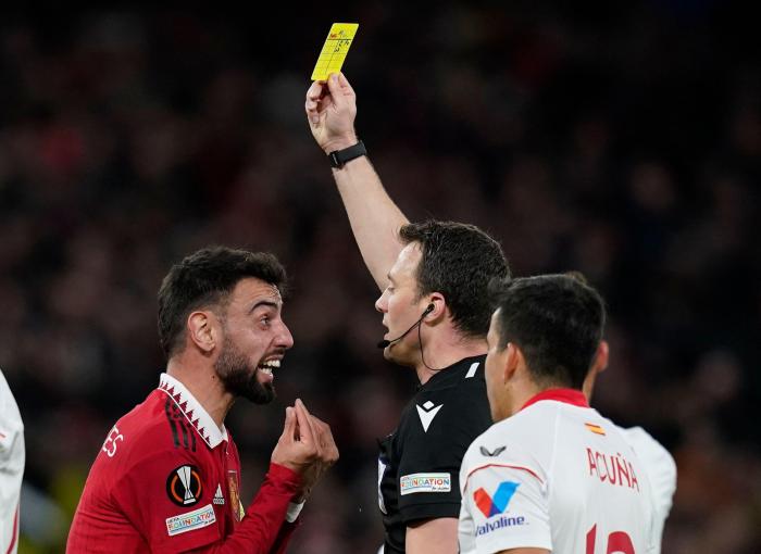 B费本赛季拿到了12张黄牌,平均4场比赛染黄一次,在英超联赛,他已经因为19轮之前拿到5张黄牌,错过了11月1-3不敌阿斯顿维拉的比赛。但他在欧联杯的停赛,曼联拥趸认为非常冤屈,因为黄牌存在明显的争议。对塞维利亚这张黄牌,很难说B费是有意手球,更像是距离太近避无可避。