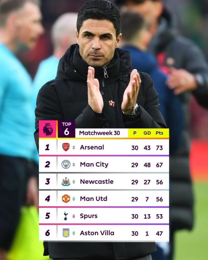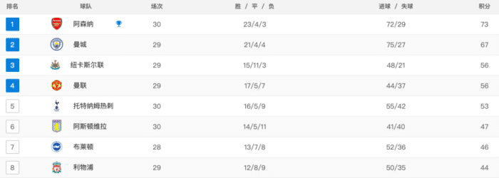 英超争冠形势:阿森纳6分领跑却已被动!曼城全胜将反超,握3大优势