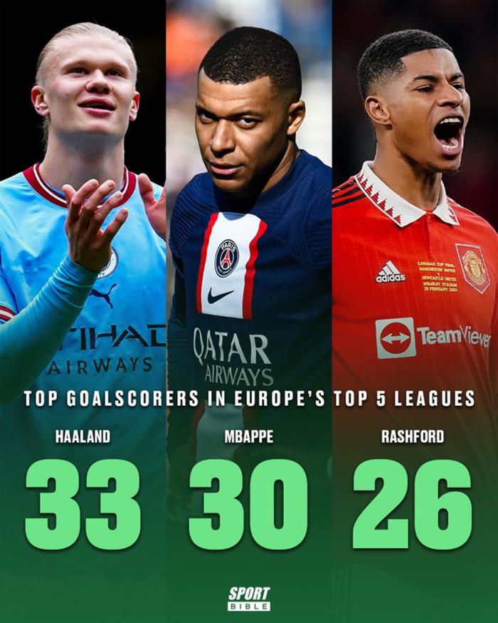 26个进球,让拉什福德成为了仅次于曼城的埃尔林·哈兰德(33球)和巴黎圣日耳曼的姆巴佩(30球)之后,欧洲五大联赛进球第三多的球员。还有一项数据显示,英格兰国脚的欧战进球数达到24球,与C罗的曼联欧战进球数持平。但这个成就其实不值得一提,因为拉什福德的欧战进球更多来自欧联杯,而C罗则是欧冠,而且,葡萄牙巨星少用了48场比赛。因此,拉师傅在欧战仍需继续证明自己。