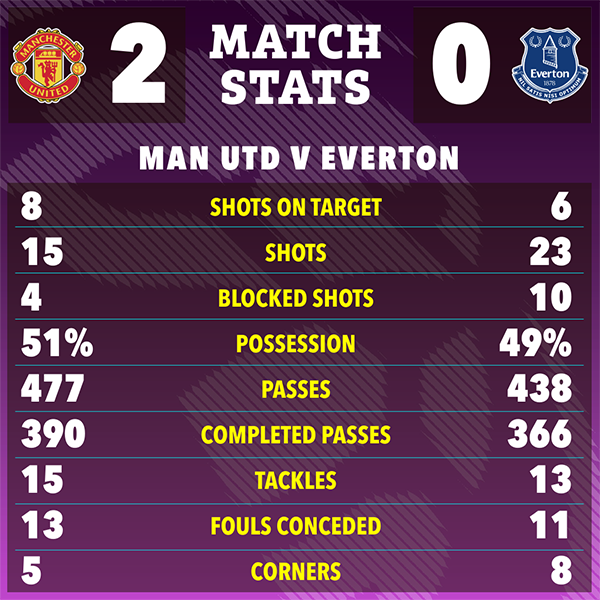 曼联虽然净胜两球,但球队并没有控制场面,尤其是上半场,埃弗顿90分钟下来共有23次射门,而曼联只有15次。数据显示,最近6场比赛,曼联被对手疯狂射门134次,名宿鲁尼和里奥·费迪南德都批评防线漏洞百出和中场不设防。