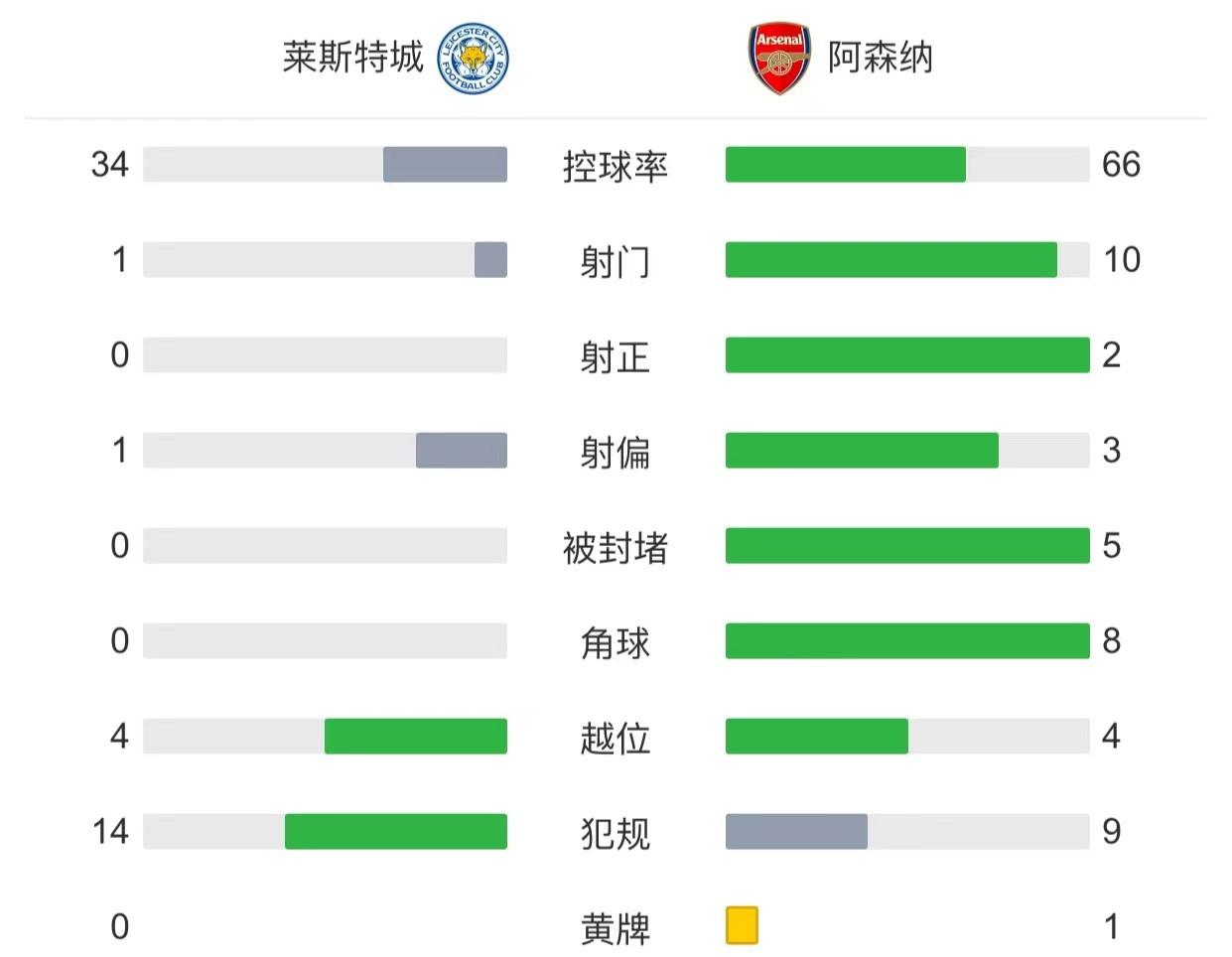 全场结束,阿森纳1-0莱斯特城,完成对手的赛季双杀。