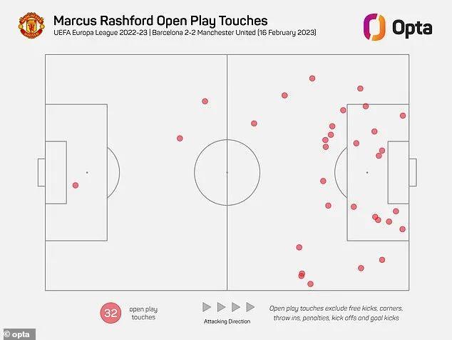在诺坎普9万观众面前,他担任中锋,在身后韦霍斯特的牵扯和拼抢下,拉什福德踢得非常自信,对技战术的运用也更为合理。如今的拉什福德不再是只会右脚兜射弧线球的前锋,他的左脚和头球,也都连续得分,4次头球得分、3次左脚破门,都是个人单赛季新高。