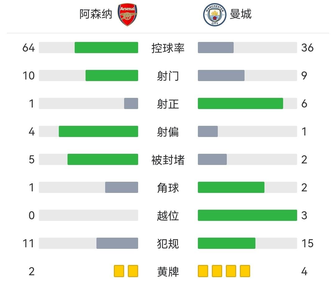 全场比赛结束,最终曼城3-1击败阿森纳 登顶英超积分榜。