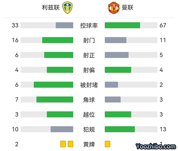 全场比赛结束,最终曼联2-0利兹联。