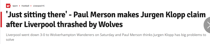 24直播网02月05日讯 ,利物浦在联赛第22轮客场0-3不敌狼队。赛后,阿森纳名宿默森在接受《利物浦回声报》采访时表示,克洛普已经不知道如何调整了。